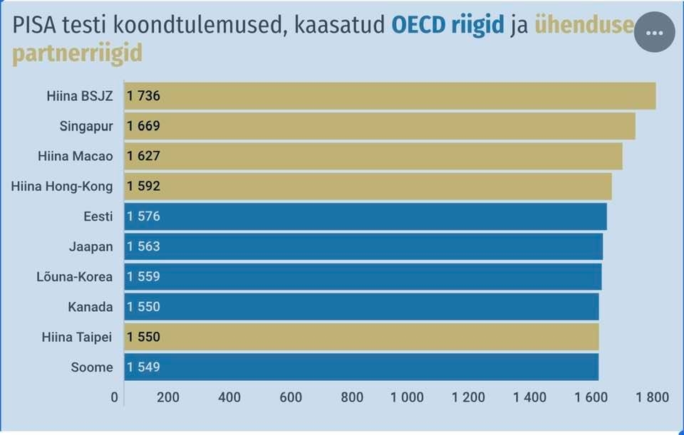 2018 PISA uuringu tulemuste järgi on Eesti lugemisokuse poolest 5.kohal, matemaatikas 8.l ja loodusainetes 4. kohal. Ülkokkuvõttes on Eesti Euroopas 1.kohal!